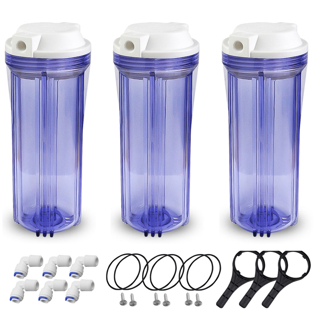 Pack of 3 sets housings. 3 x Filter housings , 6 x O rings ,3 x wrenches,6 x fittings,3 sets screws